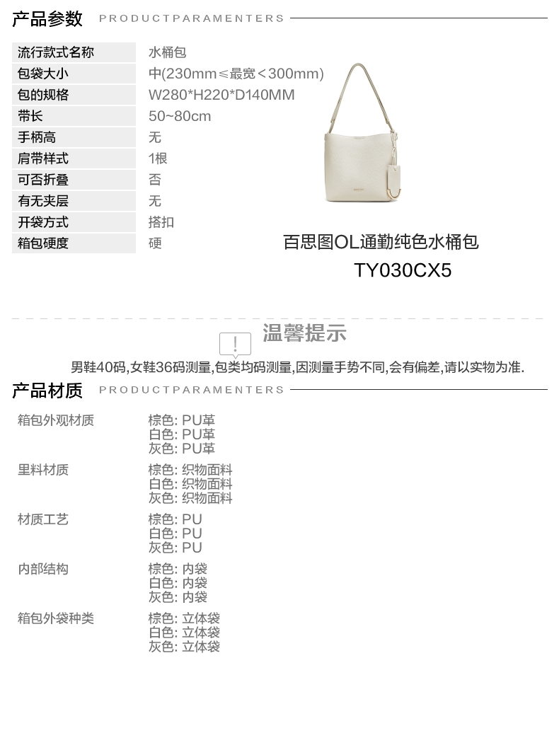 | 里料材质:织物面料 | 手柄高:无 | 上市时间:2025年秋季 | 款式季节:秋季 | 材质工艺:PU |