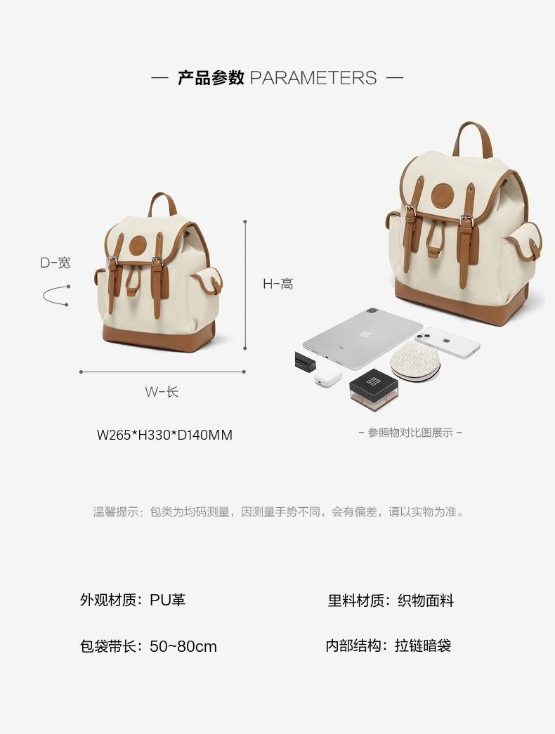 | 防水功能:不防水 | 上市时间:2025年秋季 | 适用对象:青年 | 肩带样式:2根 | 带长:50~80cm |