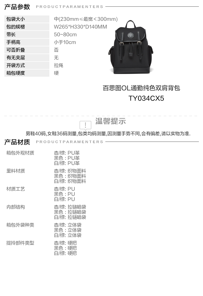 | 流行元素:纯色 | 包的规格:W265*H330*D140MM | 内部结构:拉链暗袋 | 背带方式:双肩 | 风格:OL通勤 |