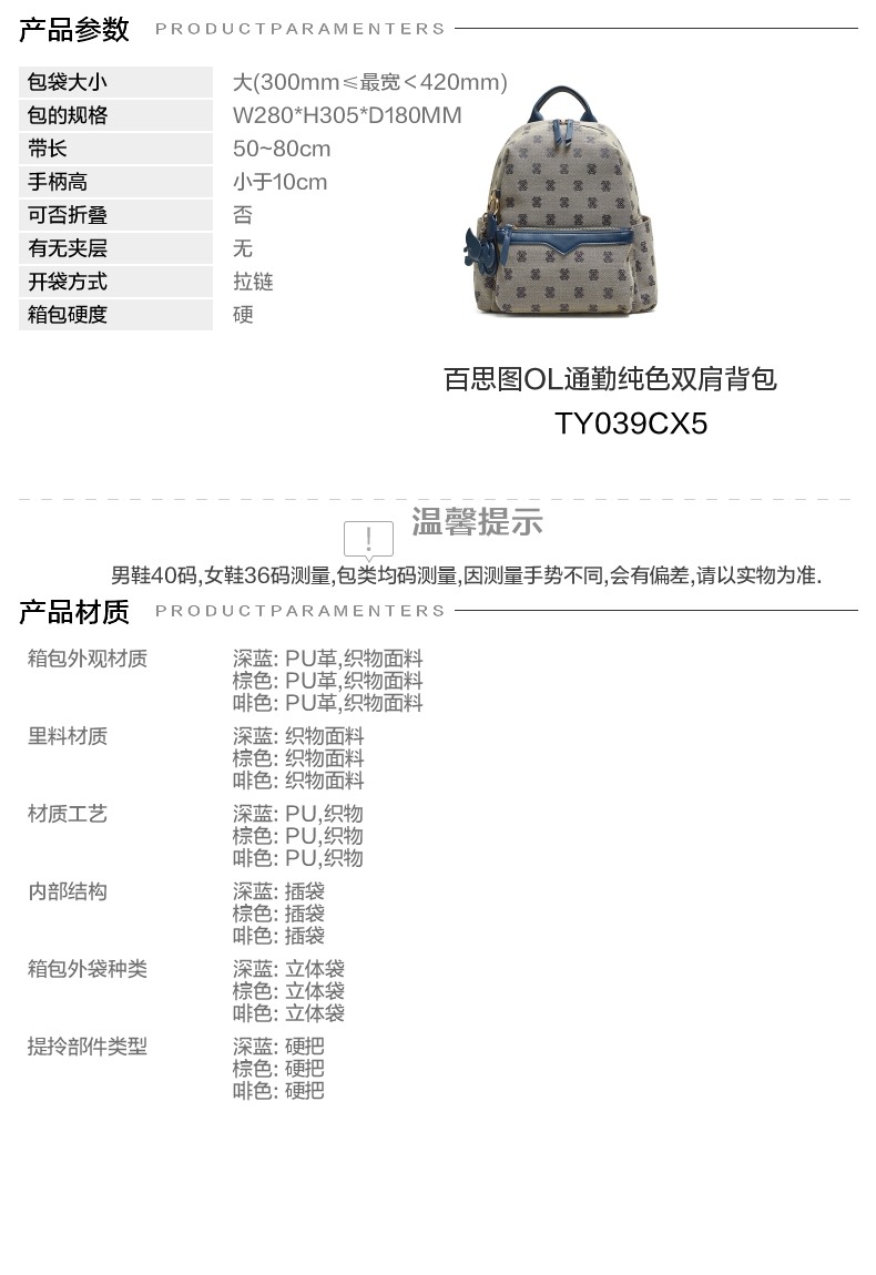 | 流行元素:纯色 | 包的规格:W280*H305*D180MM | 内部结构:插袋 | 背带方式:双肩 | 风格:OL通勤 |