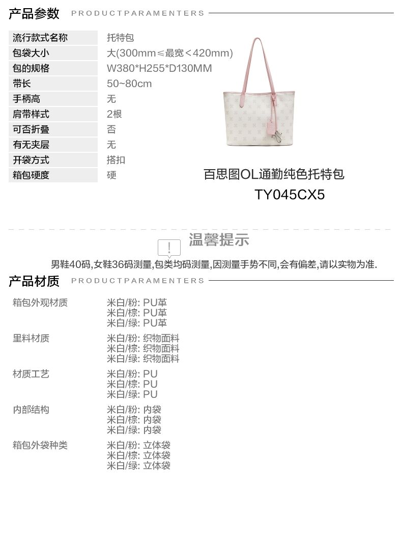 | 里料材质:织物面料 | 手柄高:无 | 上市时间:2025年秋季 | 款式季节:秋季 | 材质工艺:PU |