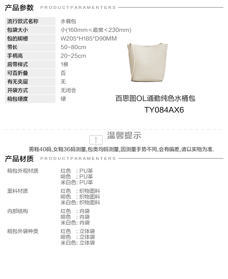 | 色系:白色 | 适用场景:通勤 | 开袋方式:无闭合 | 性别:女子 | 手柄高:20~25cm |