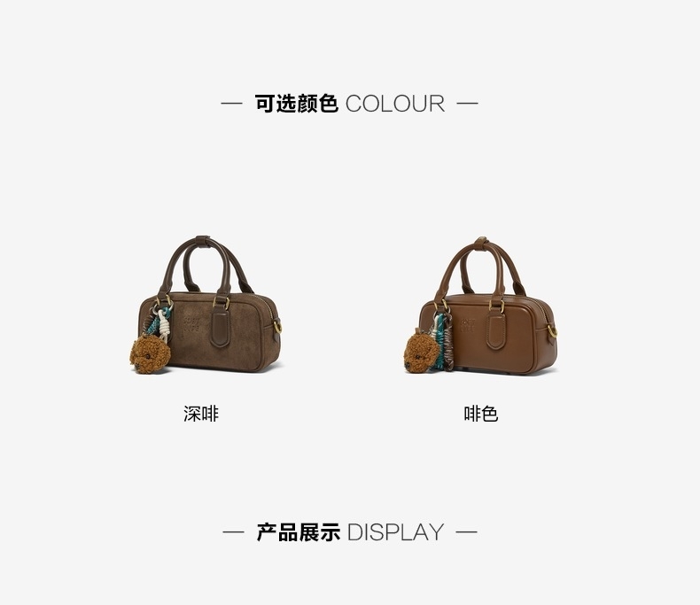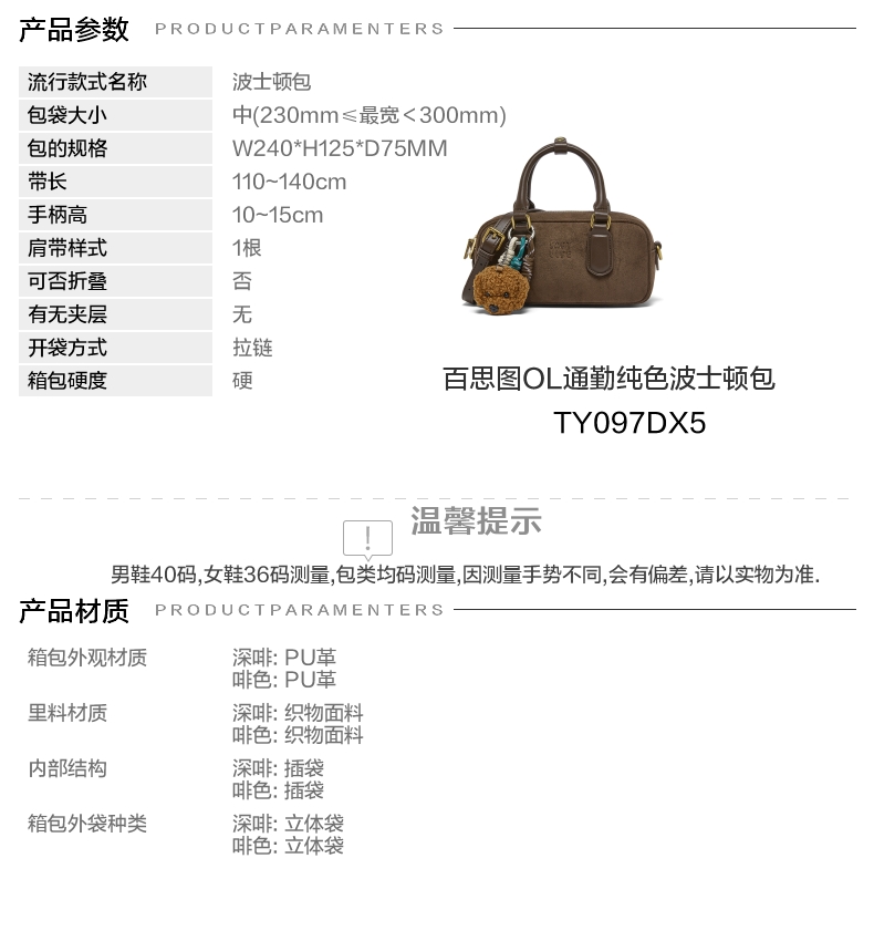 百思图2025冬季新款商场同款波士顿包时尚复古斜挎包女TY097DX5