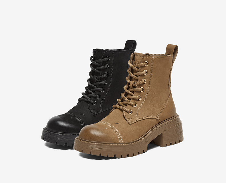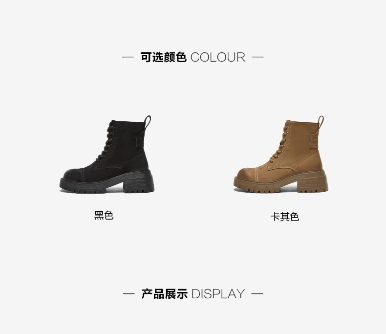 | 鞋类流行款式:马丁靴 | 鞋头款式:圆头 | 执行标准:舒适上班鞋Q/LR001-2023 | 跟高范围:高跟鞋(6-8CM) | 鞋面图案:纯色 |