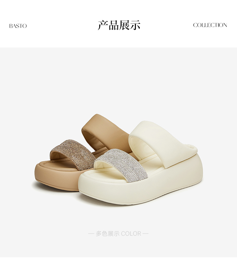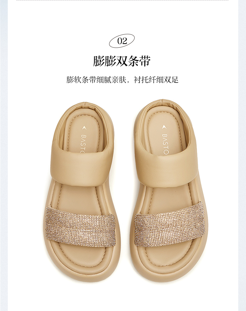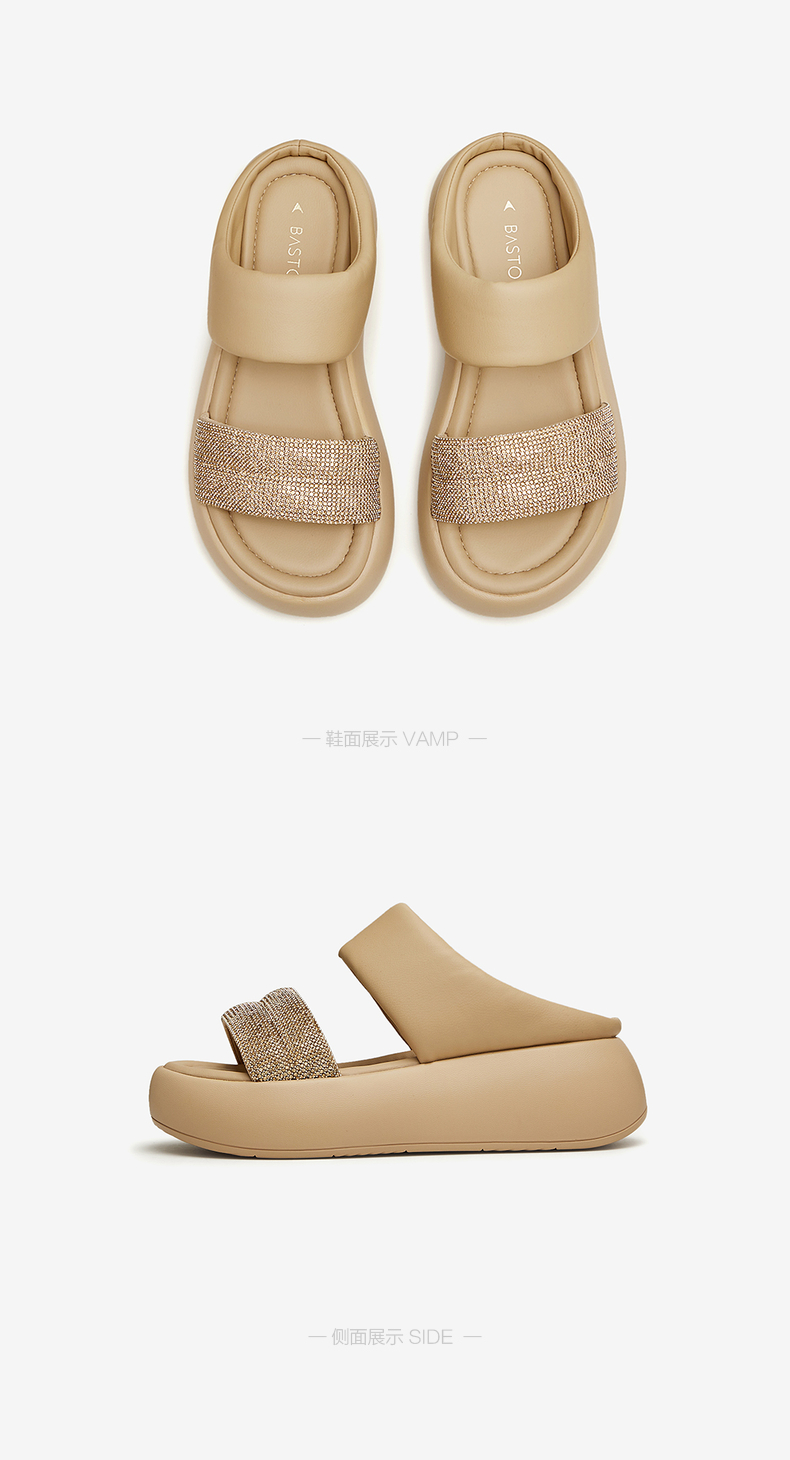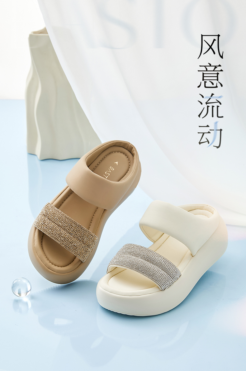 | 渠道划分:线下同步 | 前掌高度:4CM | 皮质特征:PU | 防水台高度:无 | 销售季:2024年夏季 |
