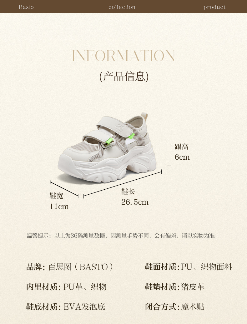 | 风格:时尚休闲 | 年份:2024年 | 色系:米白 | 参考标准尺码:36码 | 跟高数值:6CM |