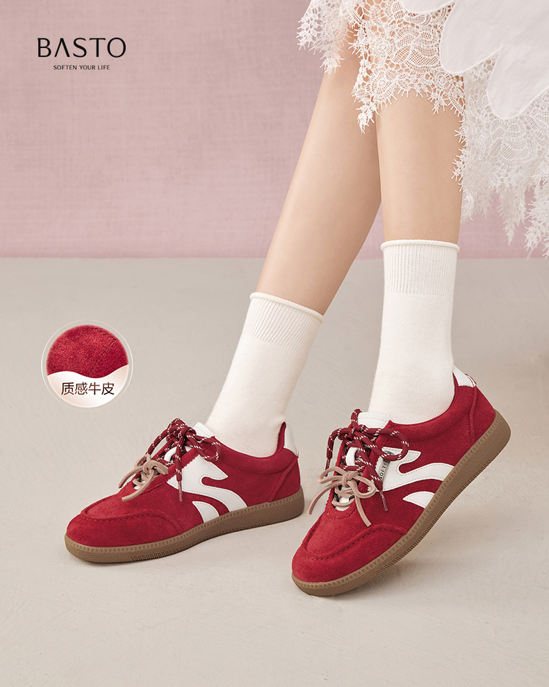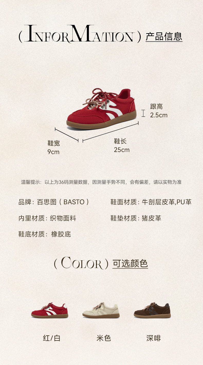 | 鞋帮:低帮 | 鞋底材质:橡胶底 | 内增高:无 | 鞋面材质:PU革牛剖层皮革 | 闭合方式:系带 |