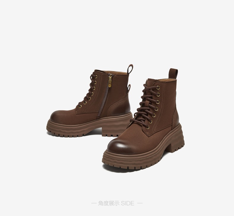 | 鞋底材质:橡胶底 | 靴筒内里材质:人造短毛绒 | 内增高:无 | 鞋面材质:牛皮革 | 闭合方式:系带 |