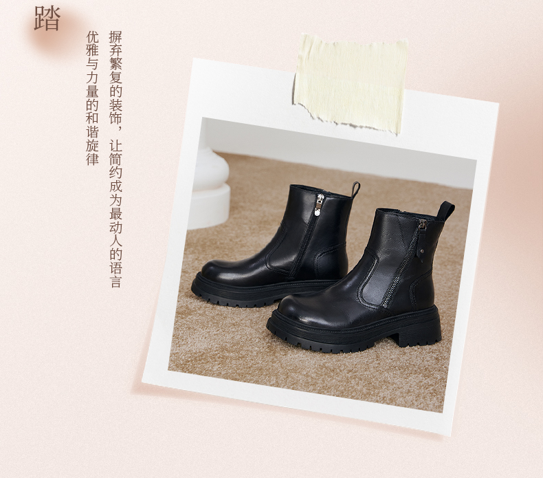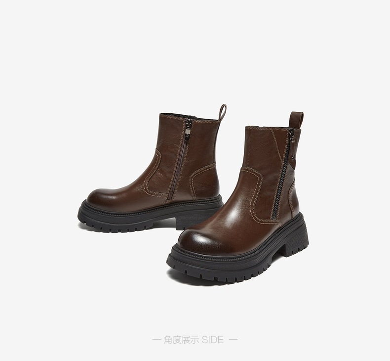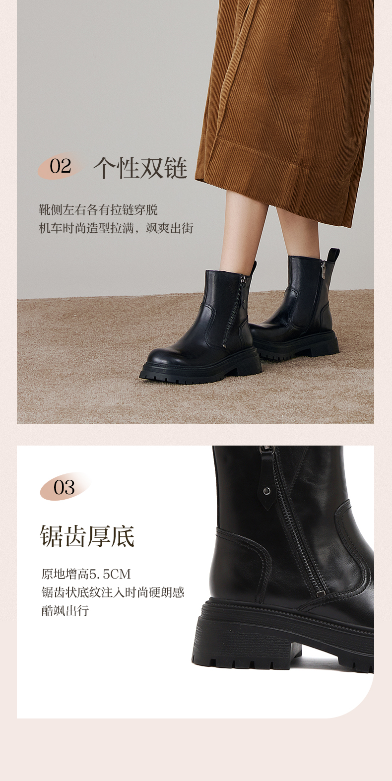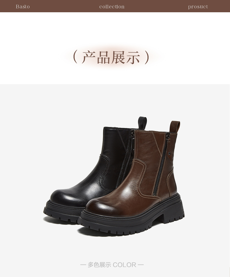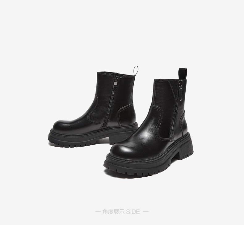 | 鞋底材质:橡胶底 | 靴筒内里材质:人造短毛绒 | 内增高:无 | 鞋面材质:牛皮革 | 闭合方式:侧拉链 |