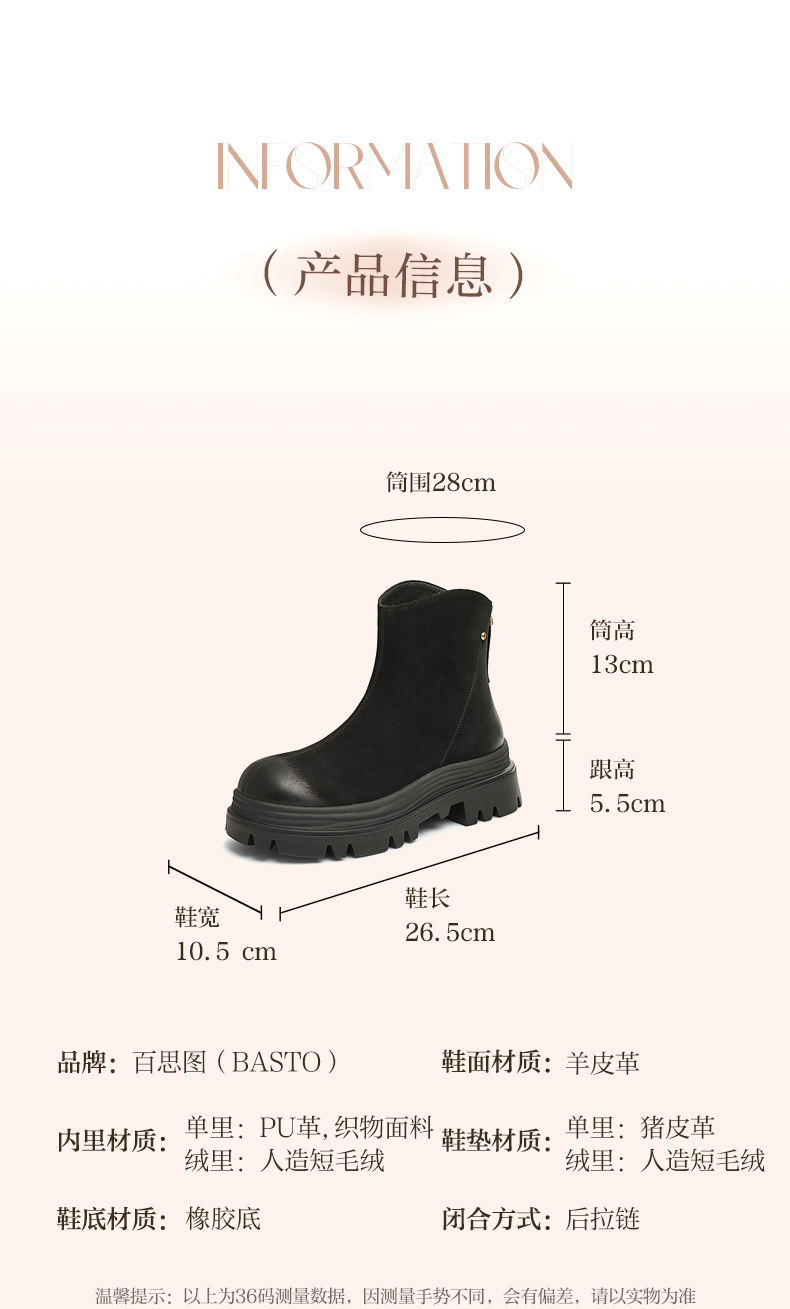 | 款式季节:冬季 | 鞋垫材质:猪皮革 | 渠道划分:线下同步 | 前掌高度:3.5CM | 皮质特征:无 |
