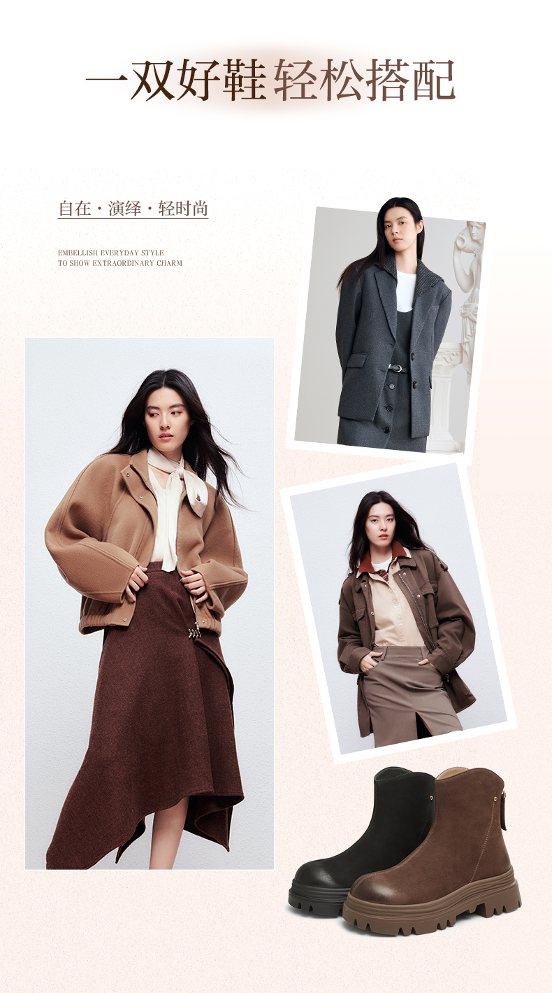 | 鞋类流行款式:时装靴 | 鞋头款式:圆头 | 执行标准:舒适上班鞋Q/LR001-2023 | 跟高范围:中跟鞋(3-5CM) | 鞋面图案:纯色 |