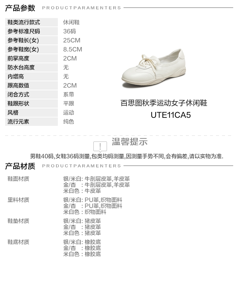 | 色系:米白 | 跟高数值:2CM | 性别:女子 | 里料材质:织物面料 | 制鞋工艺:胶贴皮鞋 |
