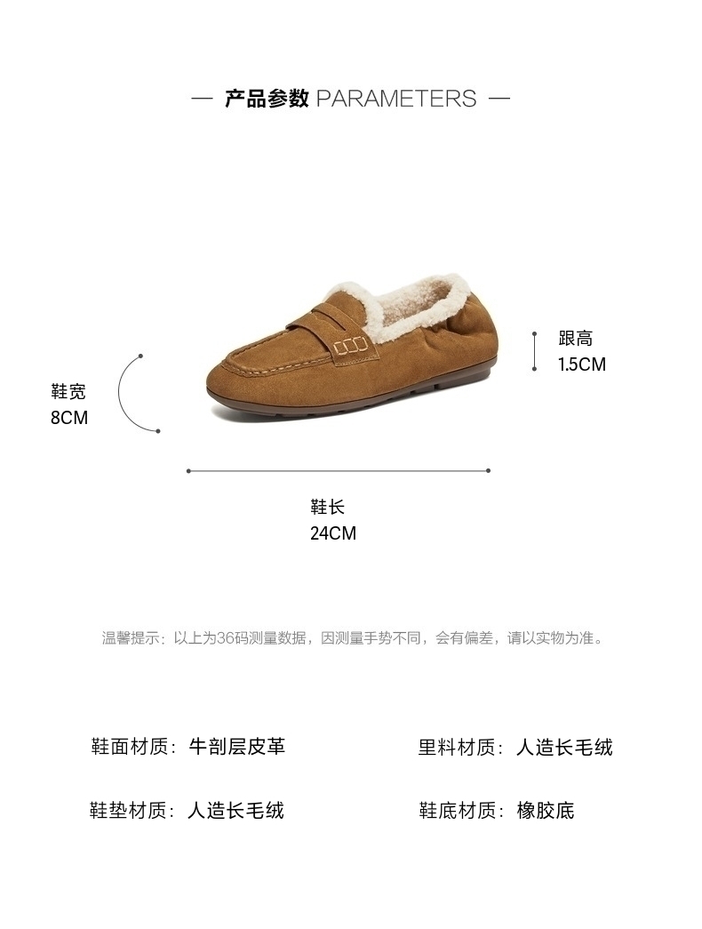 | 配跟:无 | 上市时间:2025年冬季 | 鞋类流行款式:乐福鞋 | 鞋头款式:圆头 | 鞋面图案:纯色 |