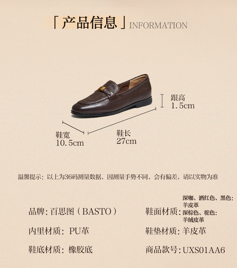 | 配跟:无 | 上市时间:2026年春季 | 鞋类流行款式:乐福鞋 | 鞋头款式:圆头 | 鞋面图案:纯色 |