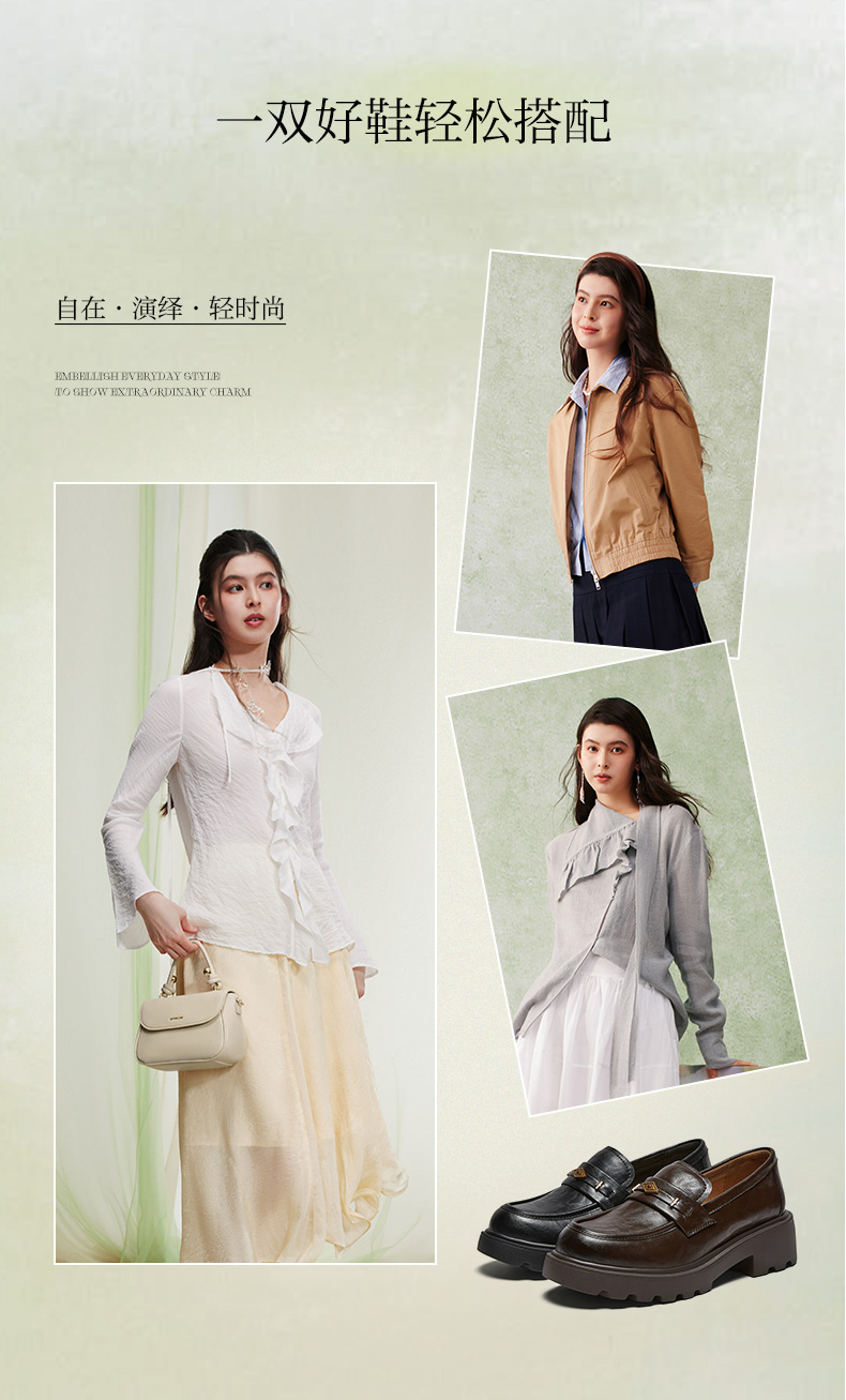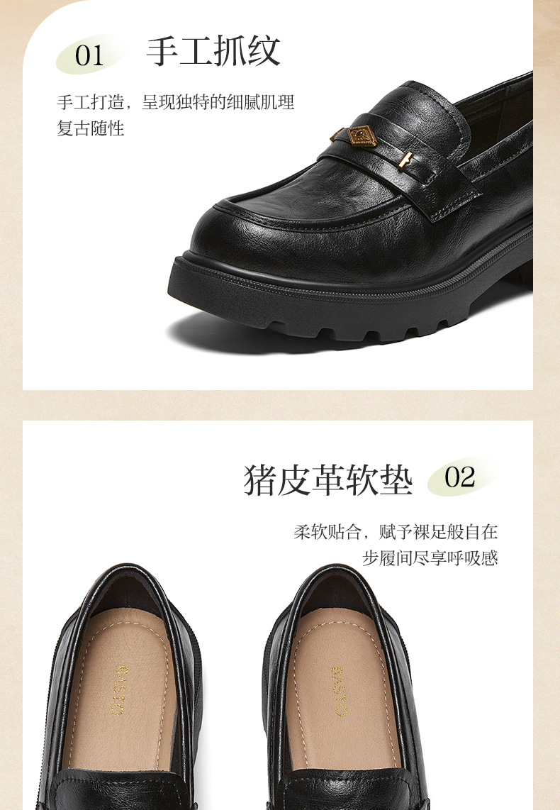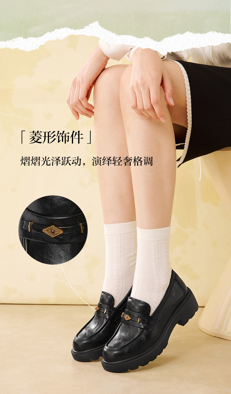 | 配跟:无 | 上市时间:2026年春季 | 鞋类流行款式:乐福鞋 | 鞋头款式:圆头 | 鞋面图案:纯色 |