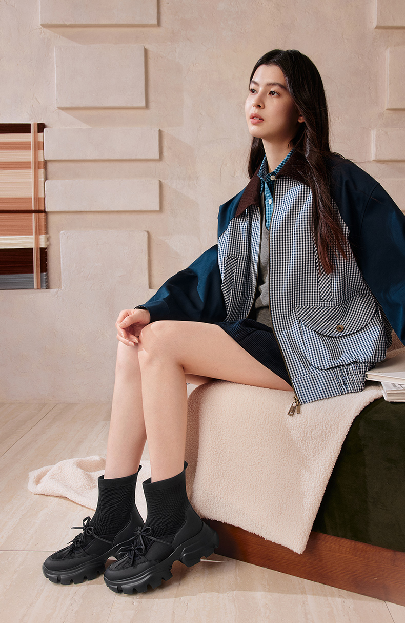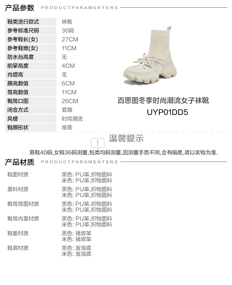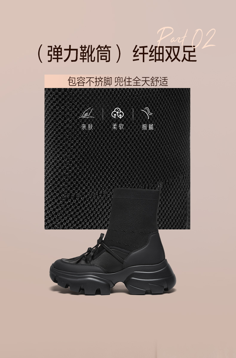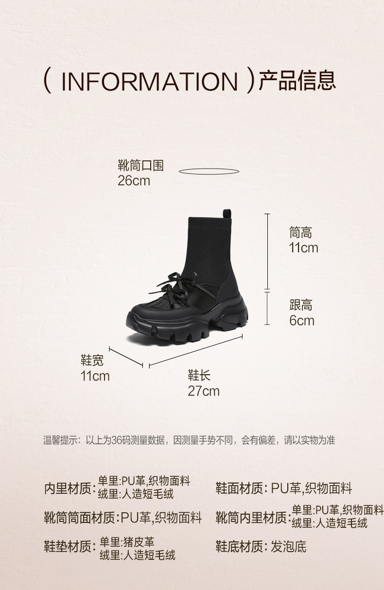 | 帮面材质:织物PU | 配跟:无 | 靴筒口围:26CM | 上市时间:2025年冬季 | 鞋类流行款式:袜靴 |