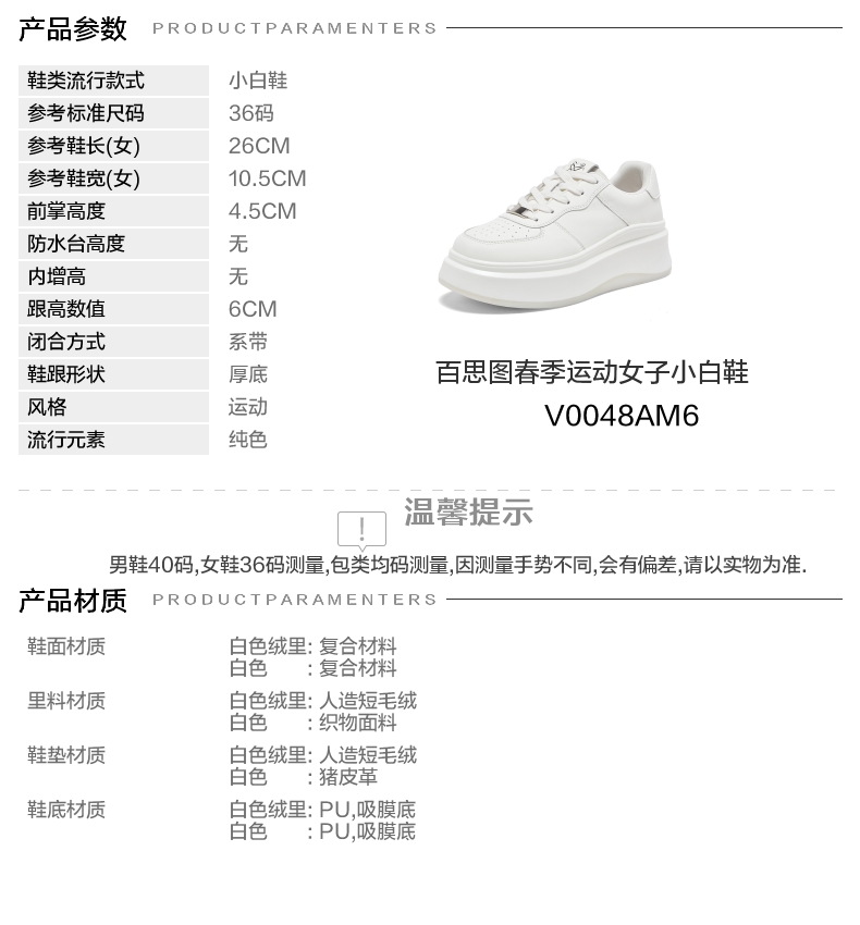 | 配跟:无 | 上市时间:2026年春季 | 鞋类流行款式:小白鞋 | 鞋头款式:圆头 | 鞋面图案:纯色 |