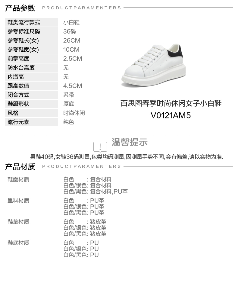 | 色系:白色 | 参考标准尺码:36码 | 跟高数值:4.5CM | 性别:女子 | 里料材质:PU革 |