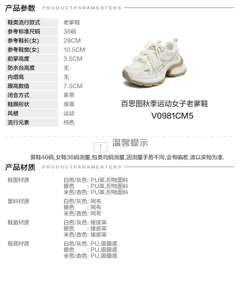 | 配跟:无 | 上市时间:2025年秋季 | 鞋类流行款式:老爹鞋 | 鞋头款式:圆头 | 鞋面图案:纯色 |