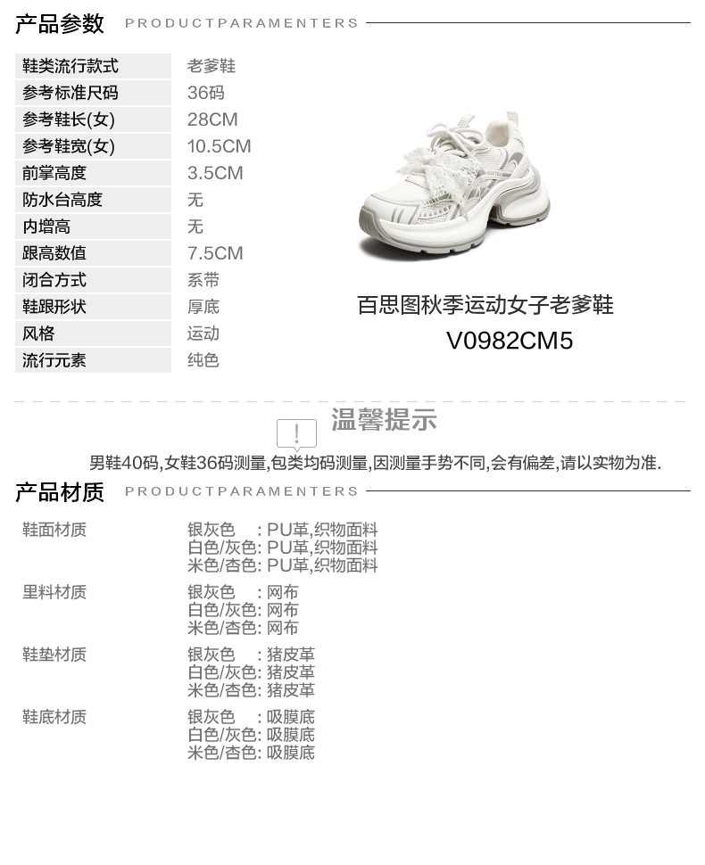 | 配跟:无 | 上市时间:2025年秋季 | 鞋类流行款式:老爹鞋 | 鞋头款式:圆头 | 鞋面图案:纯色 |