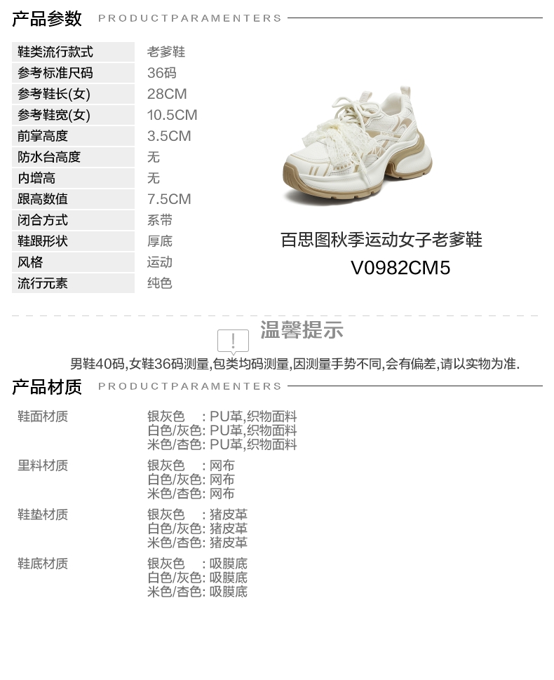 | 配跟:无 | 上市时间:2025年秋季 | 鞋类流行款式:老爹鞋 | 鞋头款式:圆头 | 鞋面图案:纯色 |
