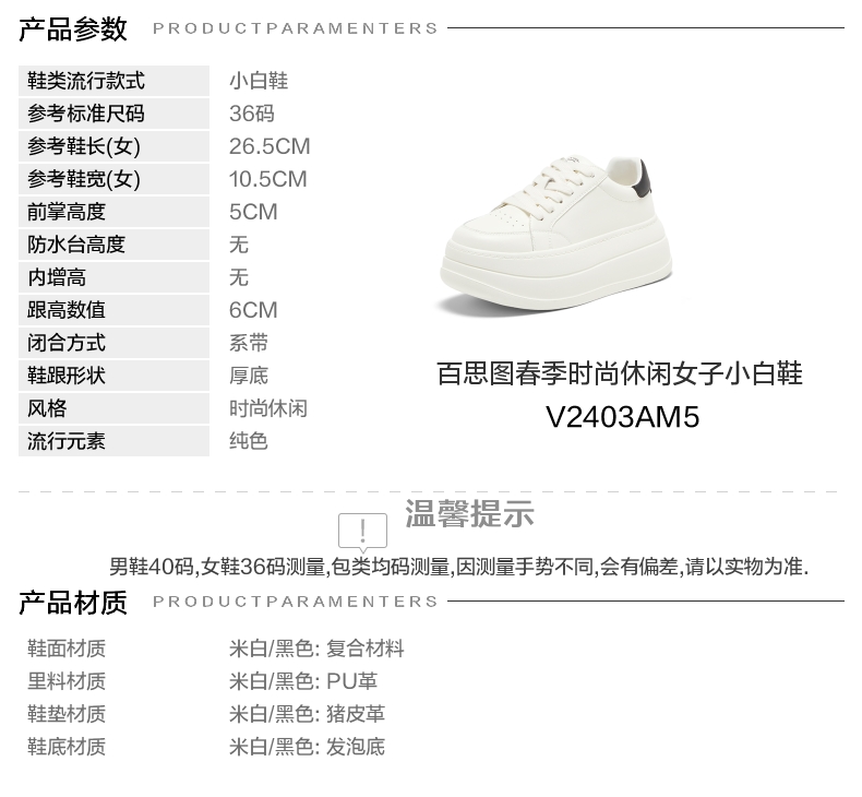 | 风格分类:小白鞋 | 上市时间:2025年春季 | 生产/经销/进口厂家:丽荣鞋业(深圳)有限公司 | 鞋类流行款式:小白鞋 | 鞋头款式:圆头 |