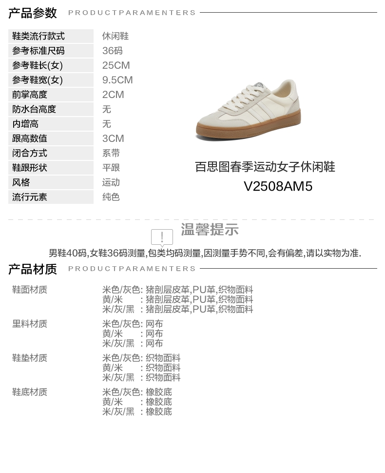 | 流行元素:纯色 | 参考鞋长(女):25CM | 参考鞋宽(女):9.5CM | 风格:运动 | 年份:2025年 |