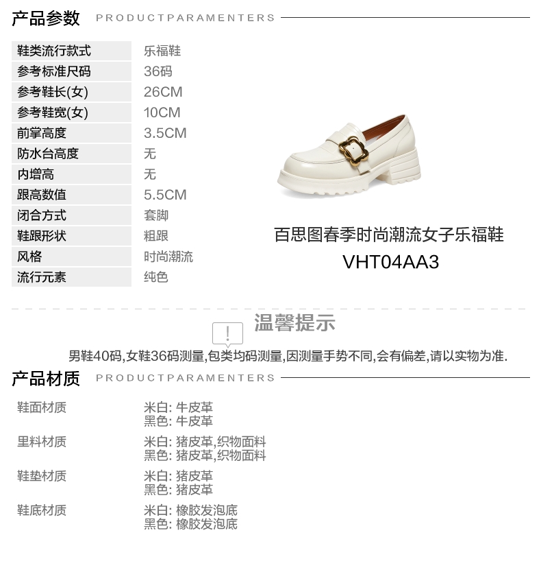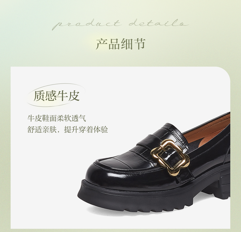 | 配跟:无 | 上市时间:2023年春季 | 鞋类流行款式:乐福鞋 | 鞋头款式:圆头 | 鞋面图案:纯色 |