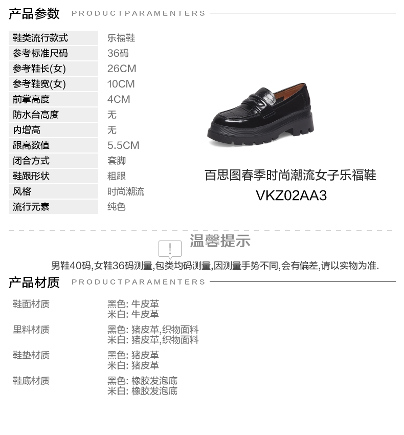| 配跟:无 | 上市时间:2023年春季 | 鞋类流行款式:乐福鞋 | 鞋头款式:圆头 | 鞋面图案:纯色 |
