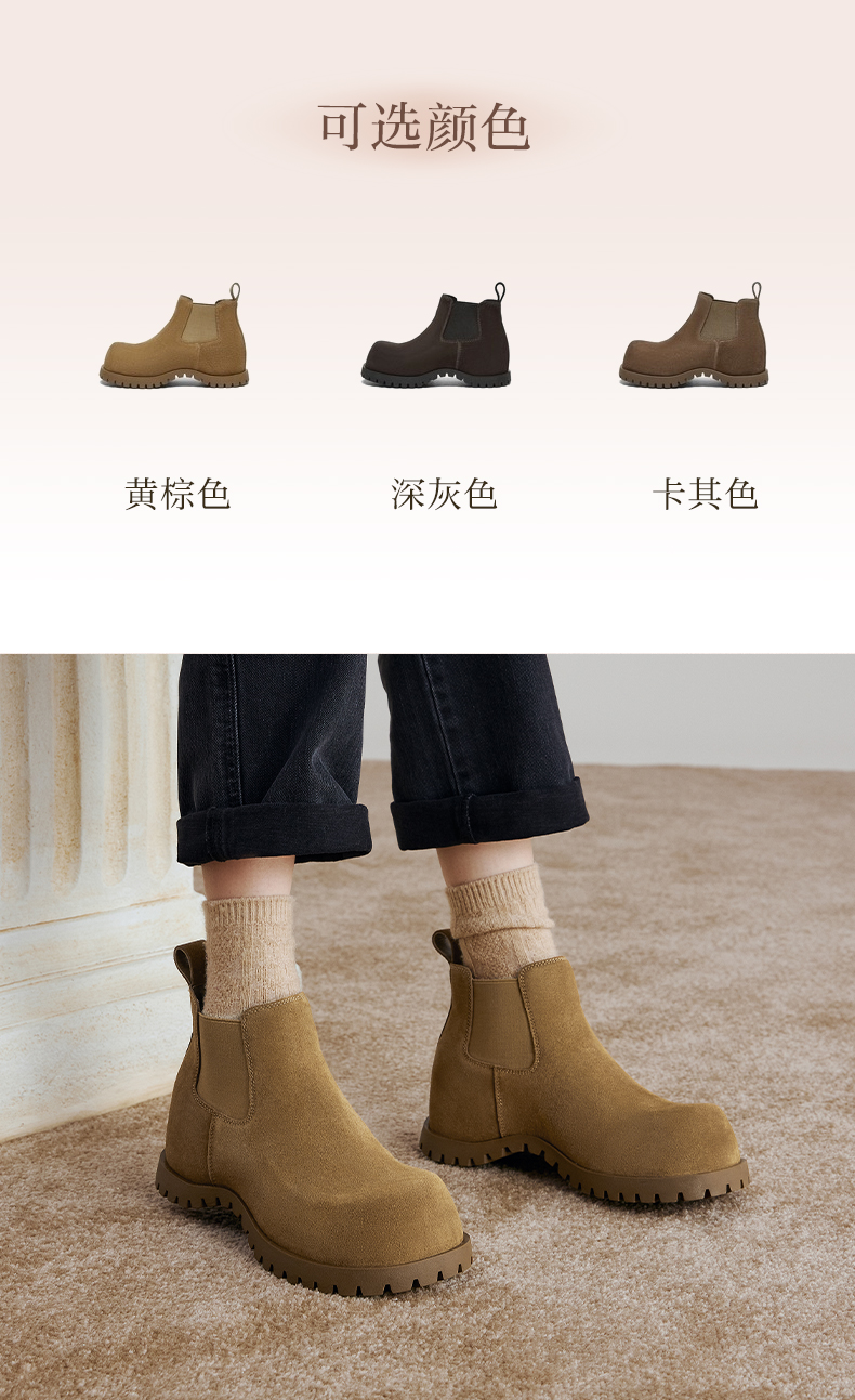 | 功能科技:耐磨 | 鞋底材质:橡胶底 | 靴筒内里材质:织物面料 | 内增高:4CM | 鞋面材质:织物面料牛剖层皮革 |