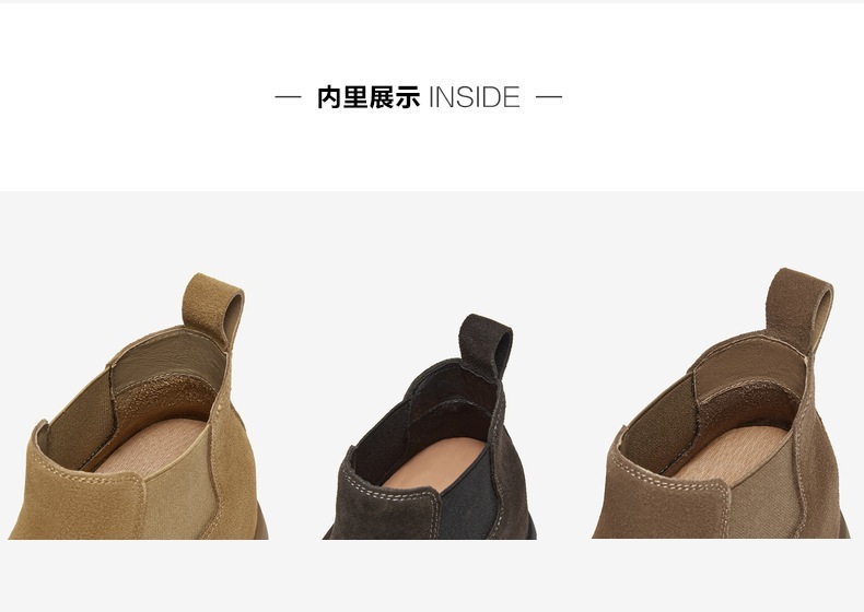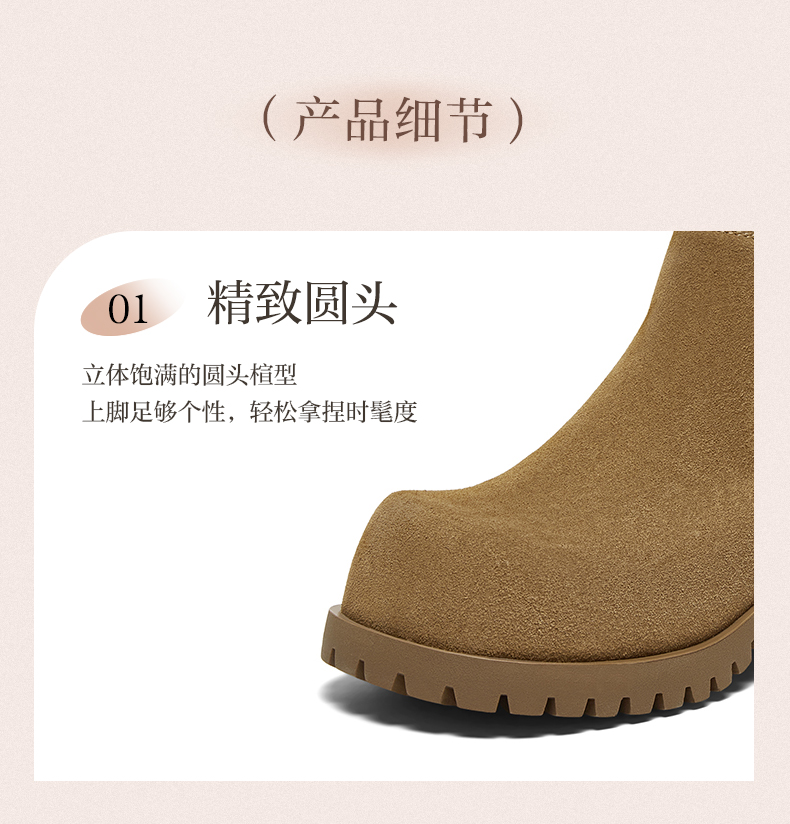 | 鞋类流行款式:切尔西靴 | 鞋头款式:圆头 | 执行标准:舒适上班鞋Q/LR001-2023 | 跟高范围:低跟鞋(小于3CM) | 鞋面图案:纯色 |