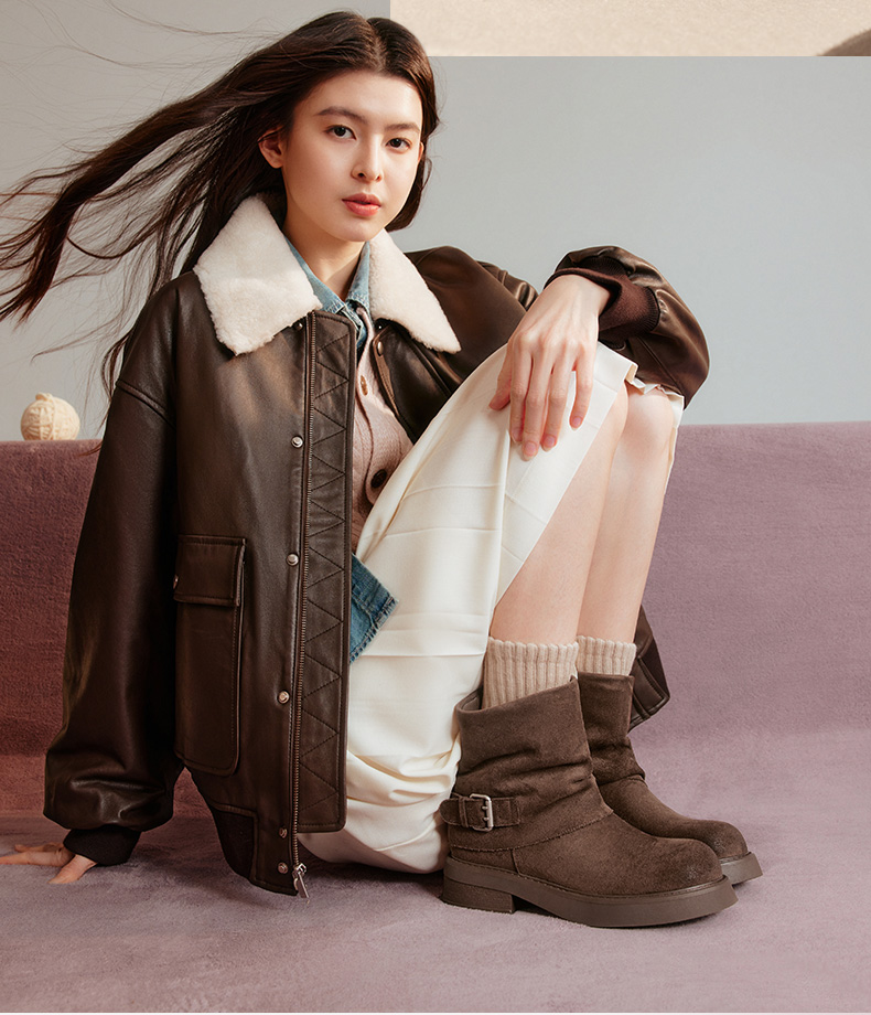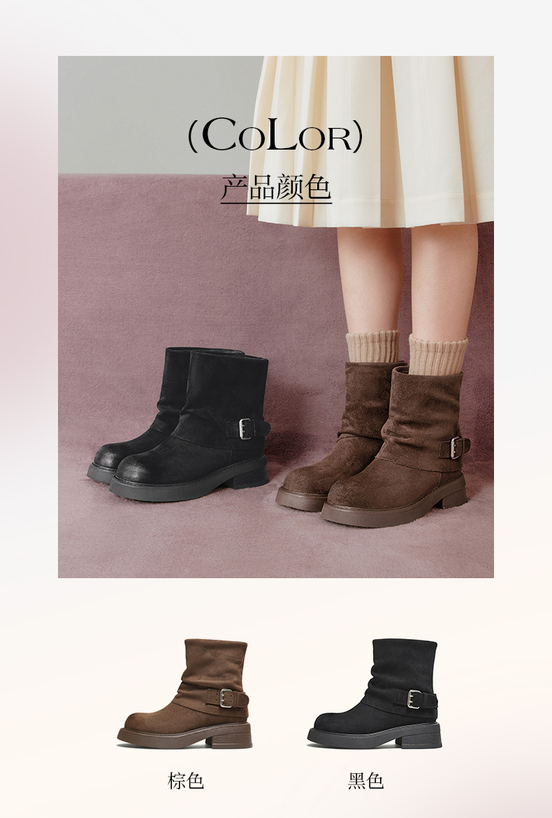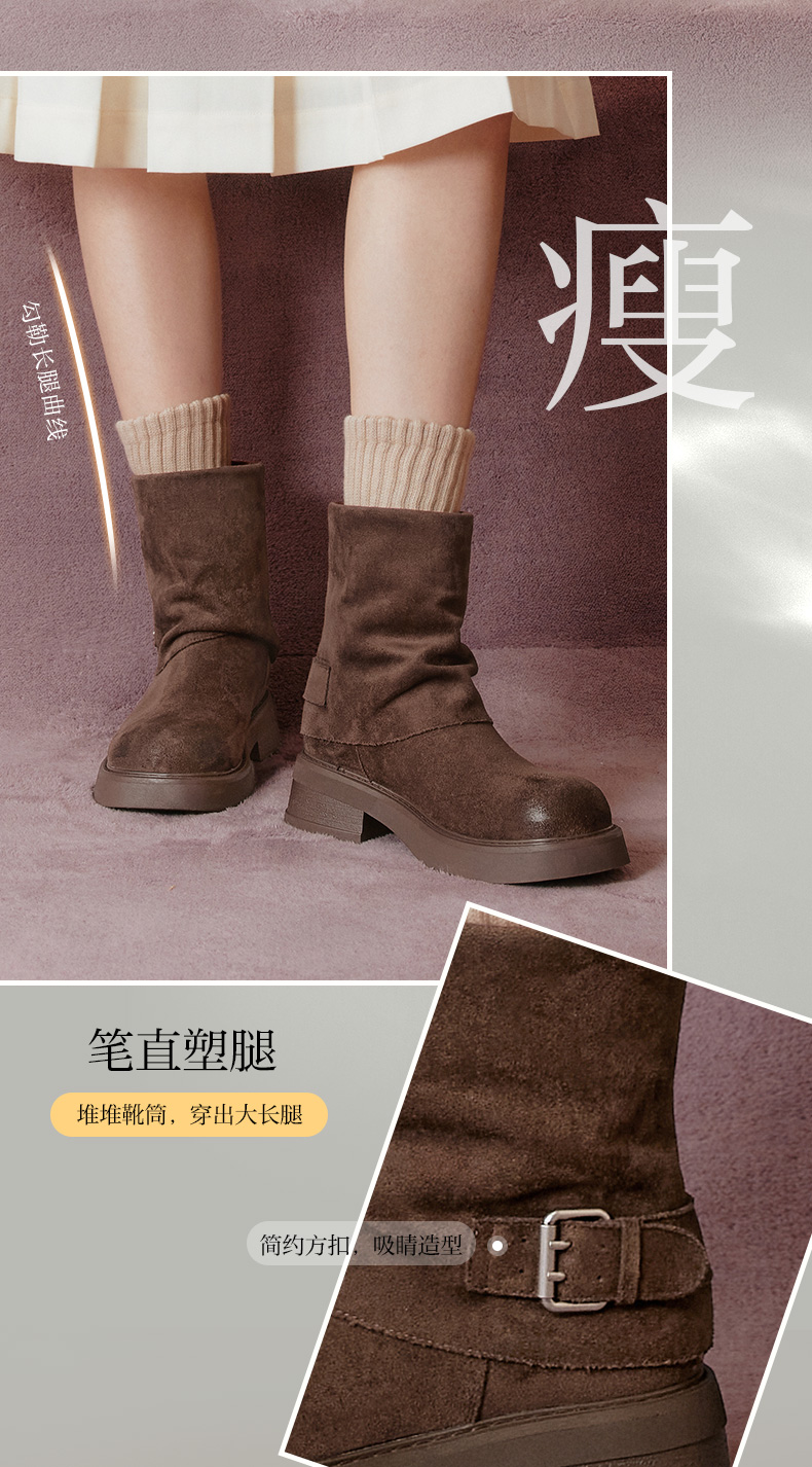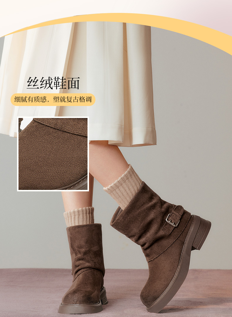 | 配跟:无 | 靴筒口围:31.5CM | 上市时间:2025年冬季 | 鞋类流行款式:时装靴 | 鞋头款式:圆头 |