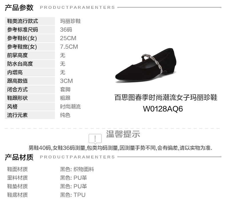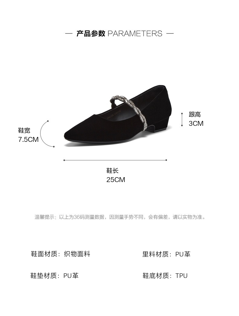 | 上市时间:2026年春季 | 鞋类流行款式:玛丽珍鞋 | 鞋头款式:尖头 | 鞋面图案:纯色 | 鞋跟形状:粗跟 |