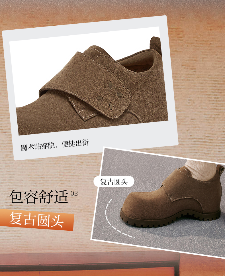 | 鞋帮:低帮 | 鞋底材质:橡胶底 | 内增高:3.5CM | 鞋面材质:牛剖层皮革 | 闭合方式:魔术贴 |