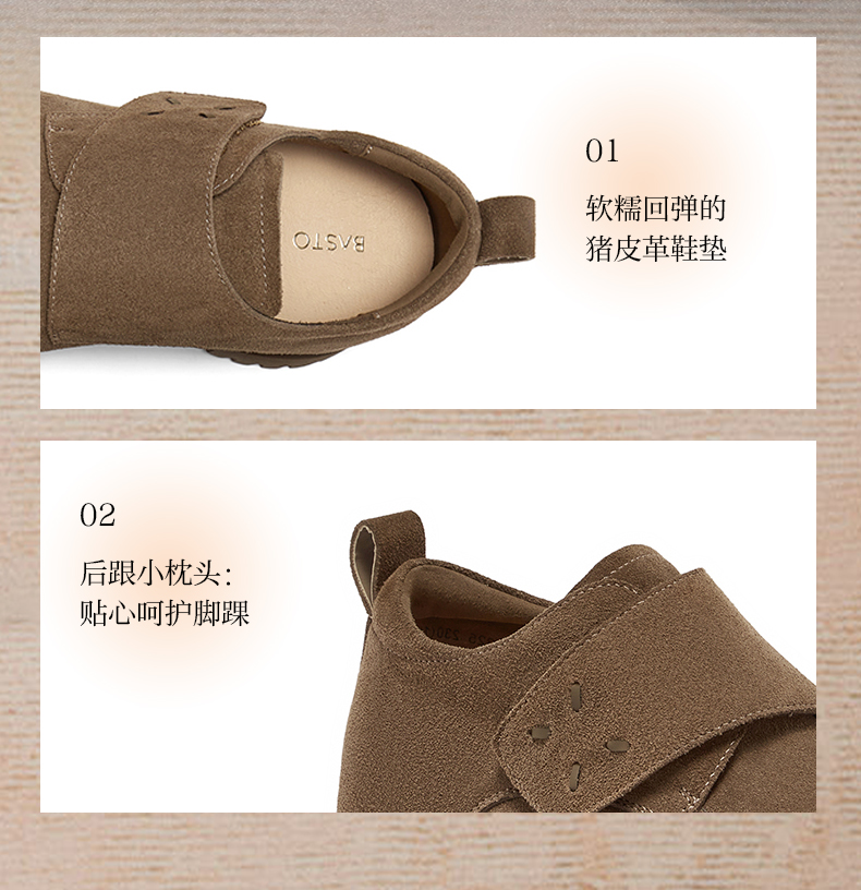BASTO(百思图),品牌拥有17年历史,秉承优雅、甜美、清新的设计理念,主张“好嫁风”的产品风格,将甜美俏丽的少女情怀融合优雅气质的时尚品味,塑造出唯美优雅、受欢迎的女鞋款式。主打以女性温柔与亲和力为特色的流行时尚产品,糅合雅致又富有亲和力的裸粉色调,淑媛端庄、清新甜美。目前品牌已开设线下门店达1400多家。