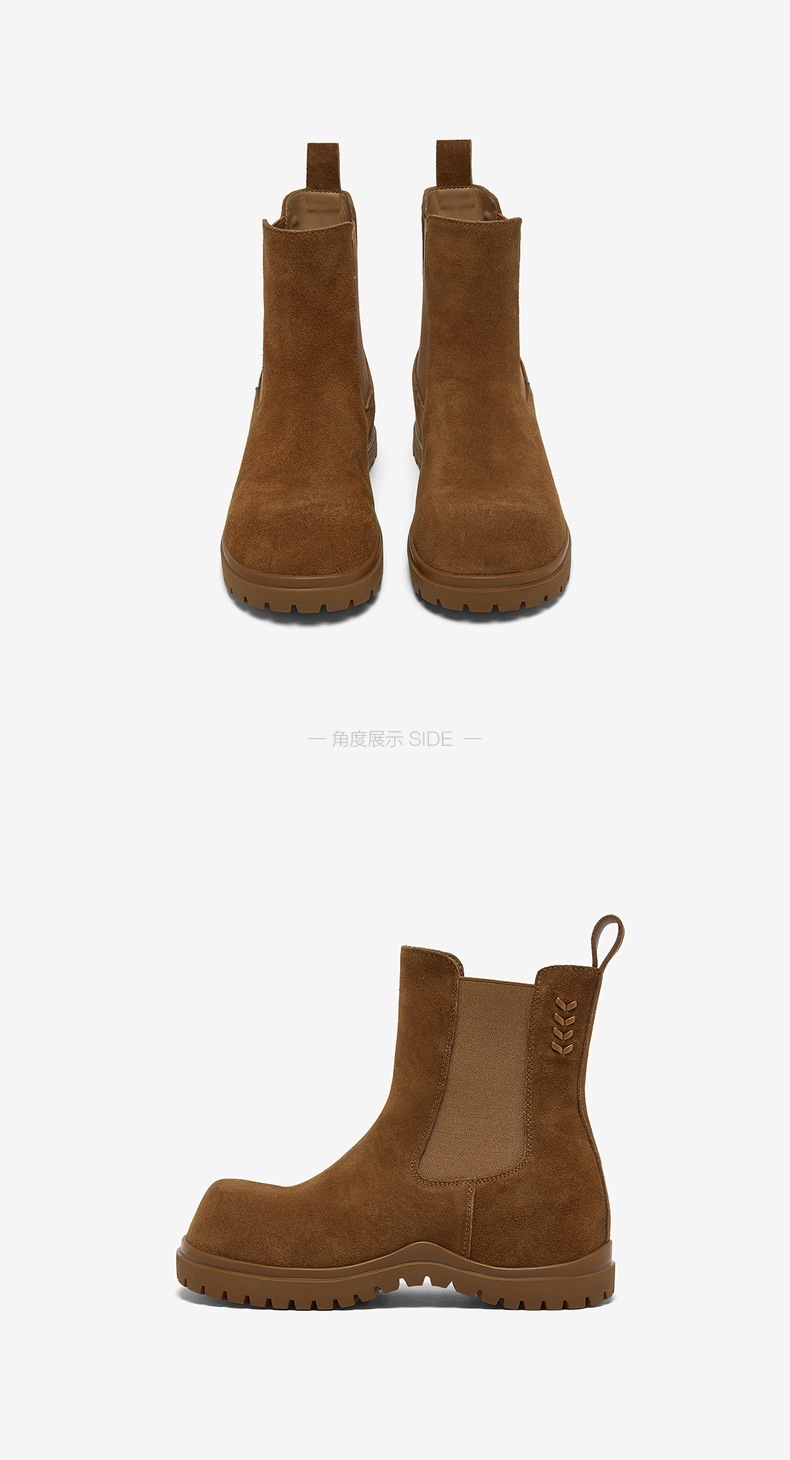 | 配跟:无 | 靴筒口围:28.5CM | 上市时间:2025年冬季 | 鞋类流行款式:切尔西靴 | 鞋头款式:圆头 |