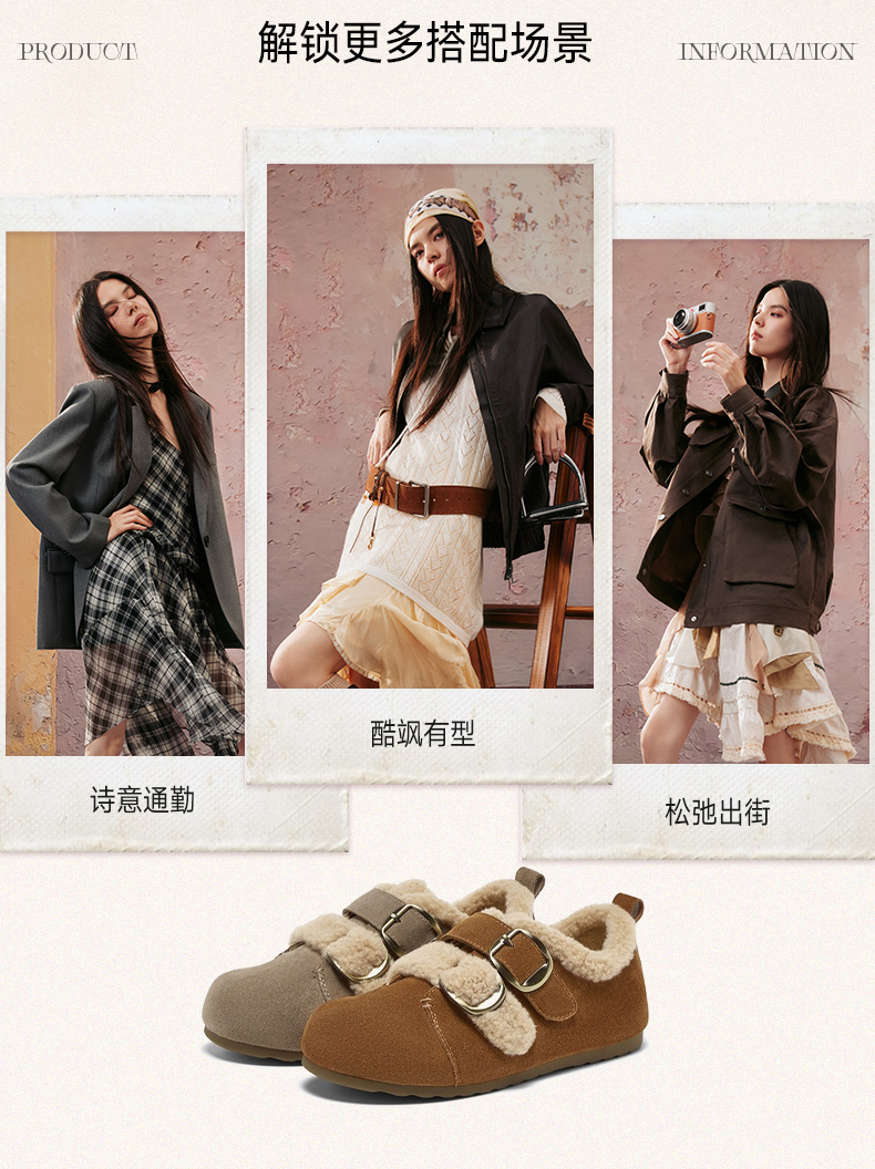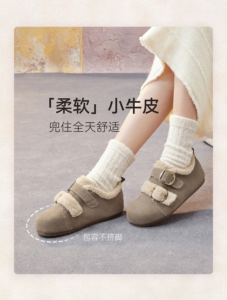 | 色系:棕色 | 跟高数值:1CM | 性别:女子 | 里料材质:人造短毛绒 | 制鞋工艺:胶贴皮鞋 |