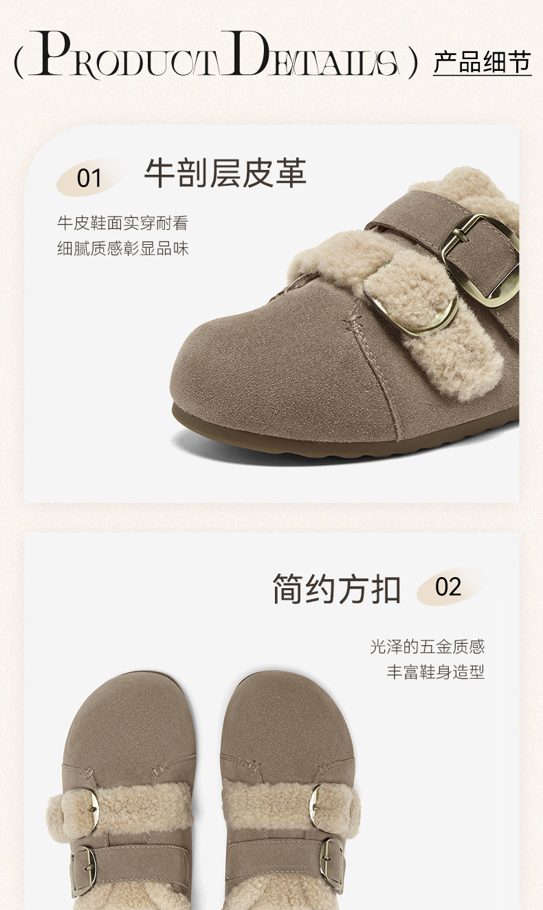 | 配跟:无 | 上市时间:2025年冬季 | 鞋类流行款式:勃肯鞋 | 鞋头款式:圆头 | 鞋面图案:纯色 |