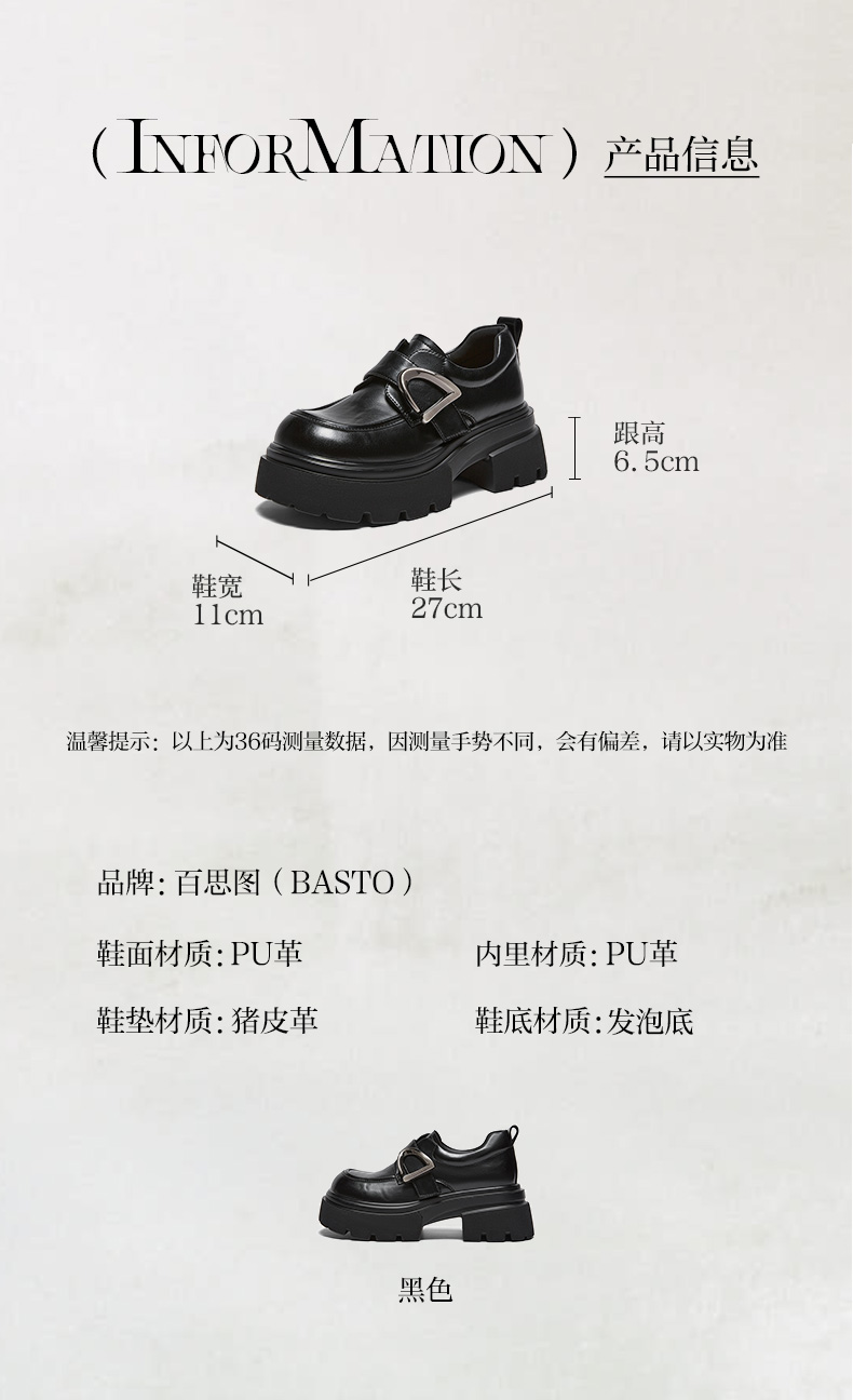 | 里料材质:PU革 | 制鞋工艺:胶贴皮鞋 | 鞋垫材质:猪皮革 | 款式季节:春季 | 前掌高度:4CM |