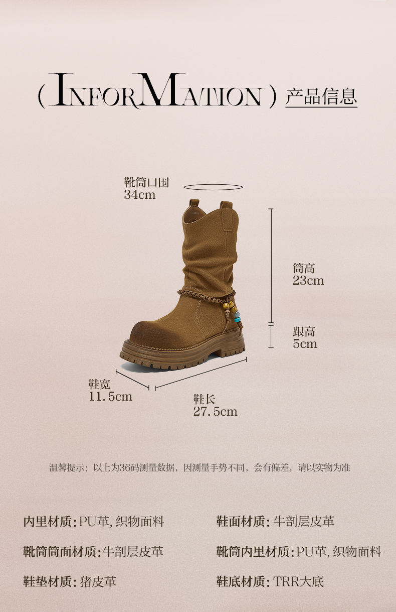 | 配跟:无 | 靴筒口围:34CM | 上市时间:2025年冬季 | 鞋类流行款式:时装靴 | 鞋头款式:圆头 |