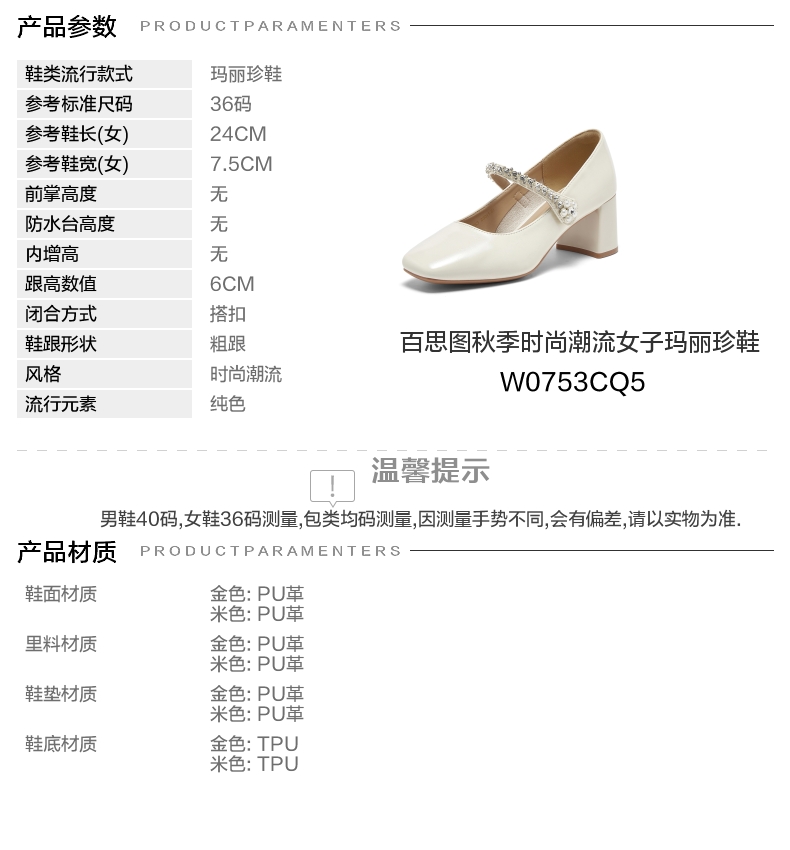 | 皮质特征:无 | 前掌高度:无 | 防水台高度:无 | 鞋类流行款式:玛丽珍鞋 |