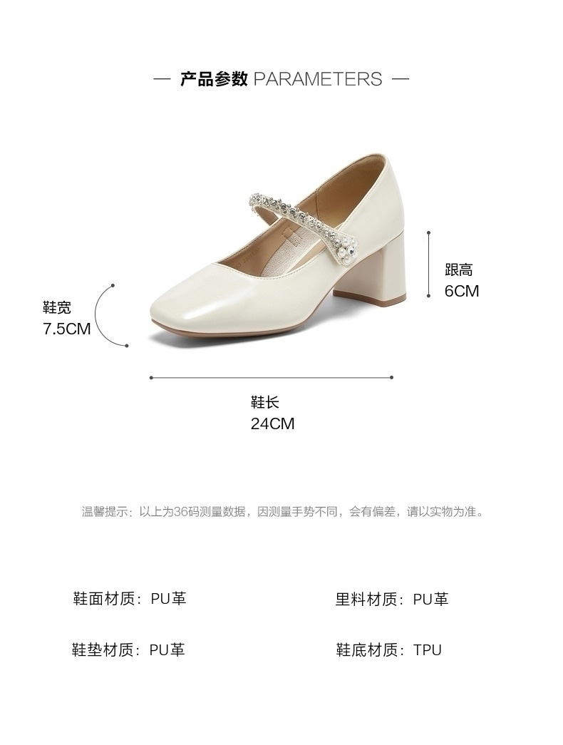 | 鞋头款式:方头 | 鞋底材质:TPU | 鞋面图案:纯色 | 内增高:无 | 鞋跟形状:粗跟 |