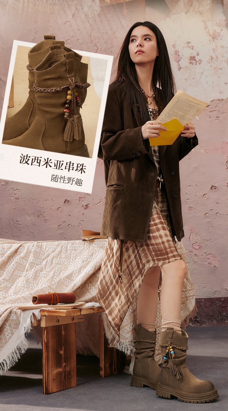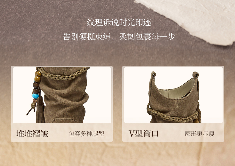 | 风格:时尚潮流 | 色系:棕色 | 跟高数值:5CM | 性别:女子 | 筒高数值:23CM |