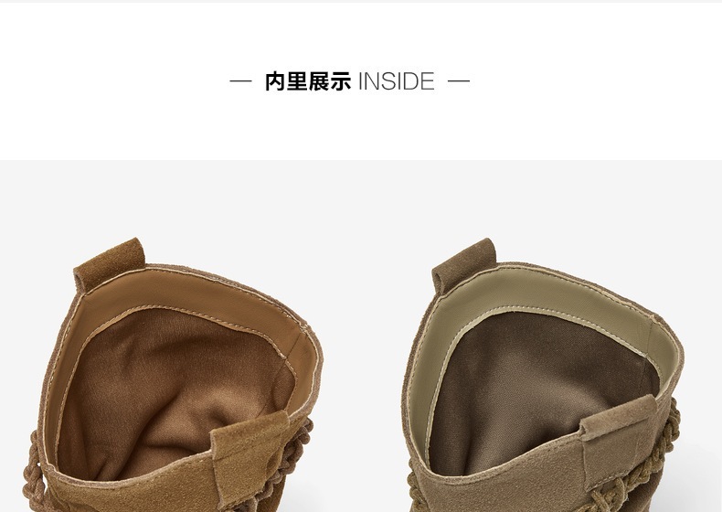 | 靴筒筒面材质:牛剖层皮革 | 里料材质:人造短毛绒 | 制鞋工艺:胶贴皮鞋 | 鞋垫材质:人造短毛绒 | 款式季节:冬季 |
