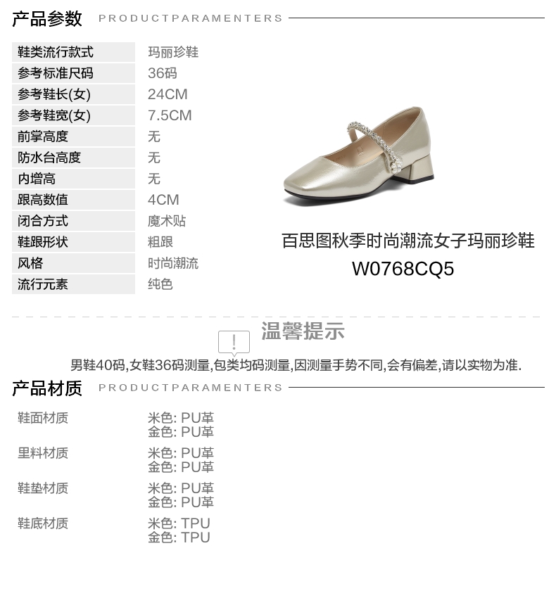 | 皮质特征:PU | 前掌高度:无 | 防水台高度:无 | 鞋类流行款式:玛丽珍鞋 |