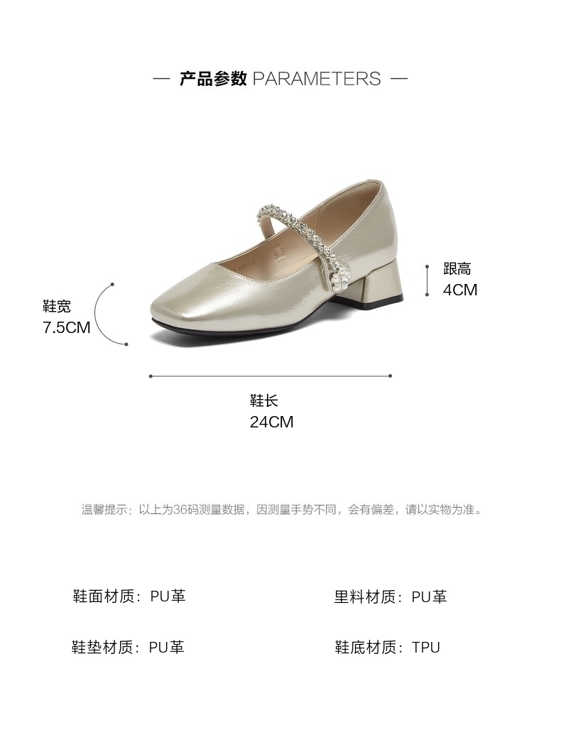 | 鞋头款式:方头 | 鞋底材质:TPU | 鞋面图案:纯色 | 内增高:无 | 鞋跟形状:粗跟 |