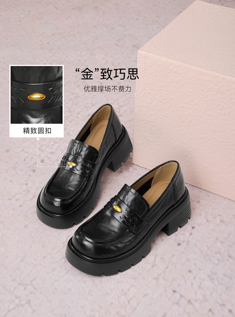 | 配跟:无 | 上市时间:2025年秋季 | 鞋类流行款式:乐福鞋 | 鞋头款式:圆头 | 鞋面图案:纯色 |