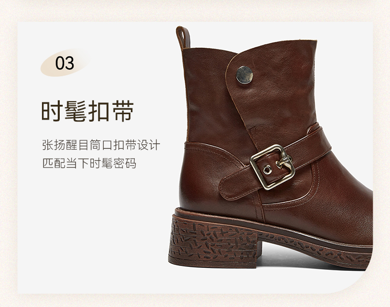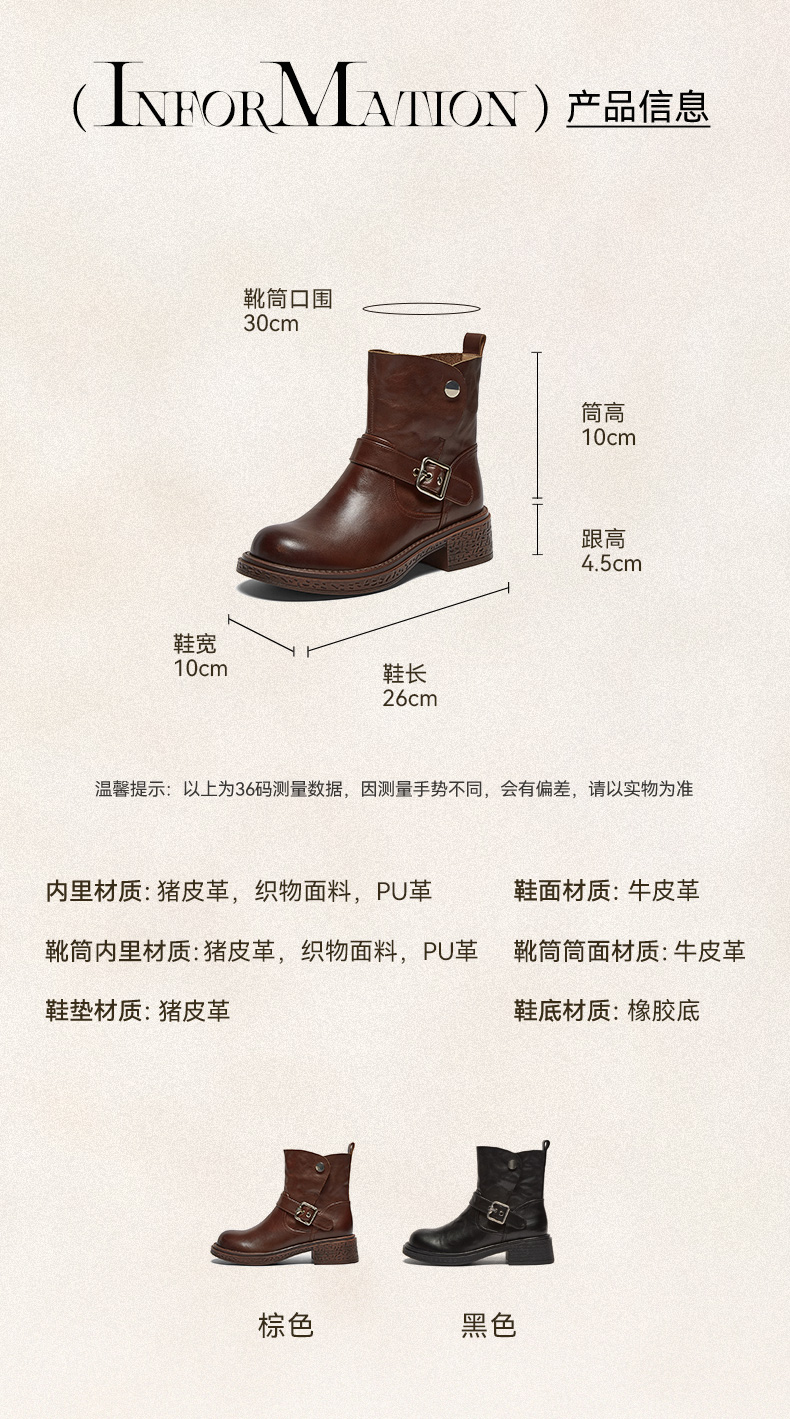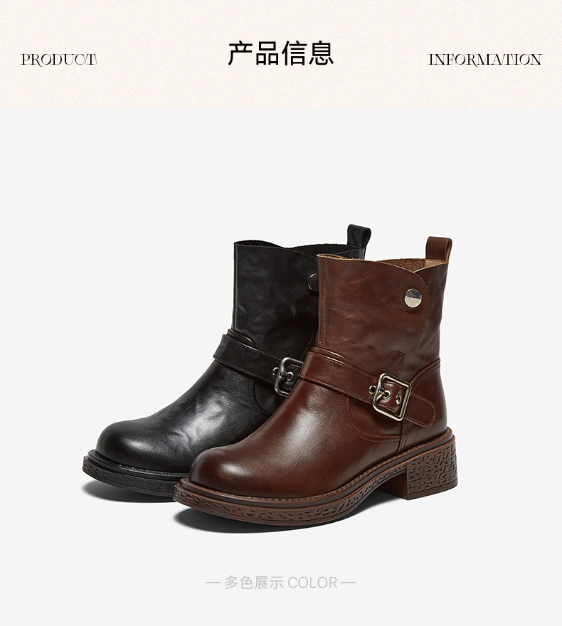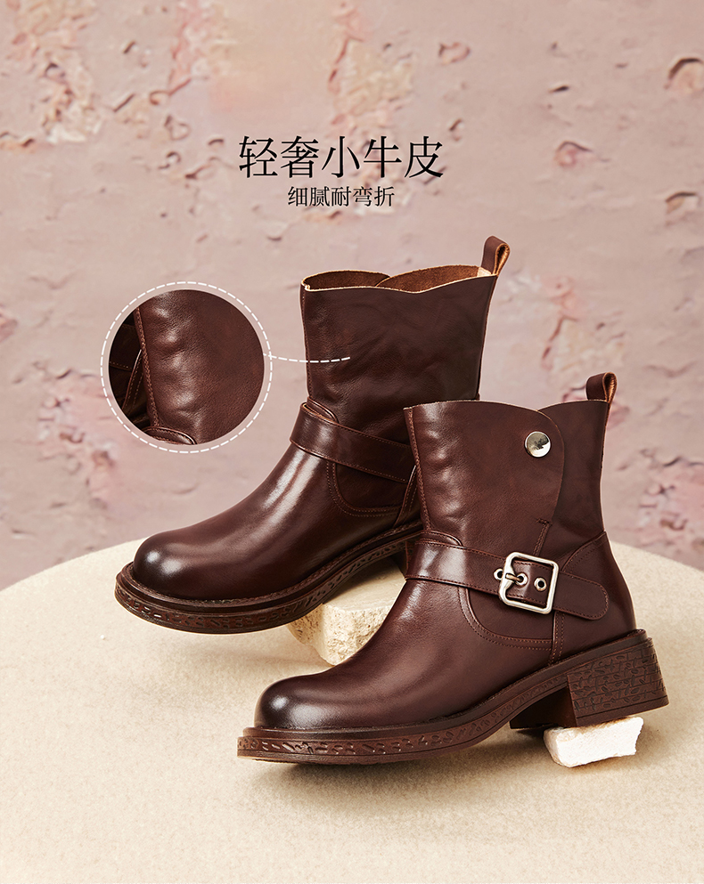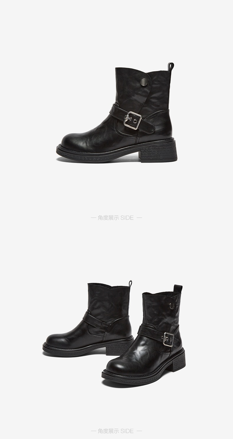 | 帮面材质:牛皮革 | 配跟:无 | 靴筒口围:31CM | 上市时间:2025年冬季 | 鞋类流行款式:短靴 |