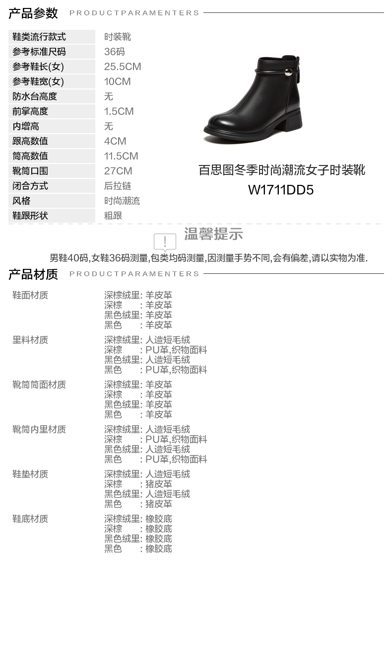 | 款式季节:冬季 | 前掌高度:1.5CM | 皮质特征:无 | 防水台高度:无 |