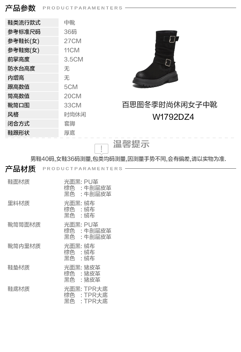 | 款式季节:冬季 | 鞋垫材质:猪皮革 | 渠道划分:电商专销 | 前掌高度:3.5CM | 皮质特征:无 |